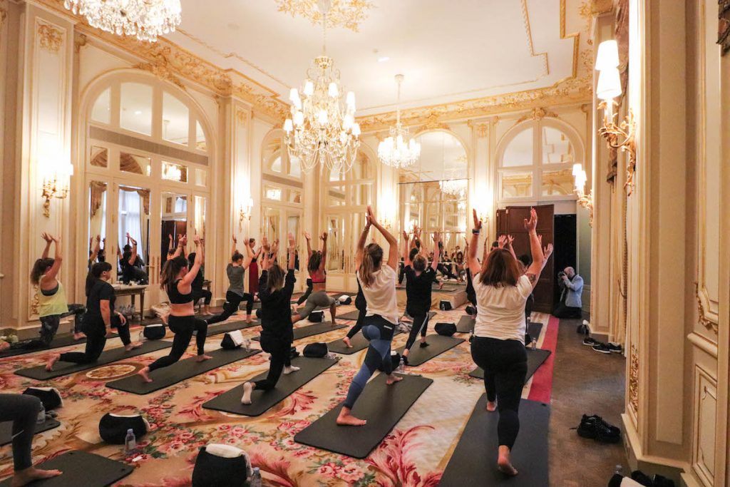 J’espère que vous allez bien ? Aujourd’hui je vous accueille dans le salon d’été du Ritz mesdemoiselles et messieurs…Rien que ça ;). Avec Christelle, le canard ivre, nous avons eu la chance de donner un cours de Yoga Hiit, un entrainement assez innovant de notre création. En partenariat avec H&M, plusieurs d’entre vous ont été conviées afin de tester et de découvrir en direct la nouvelle collection H&M Sport Conscious Eco Responsable.